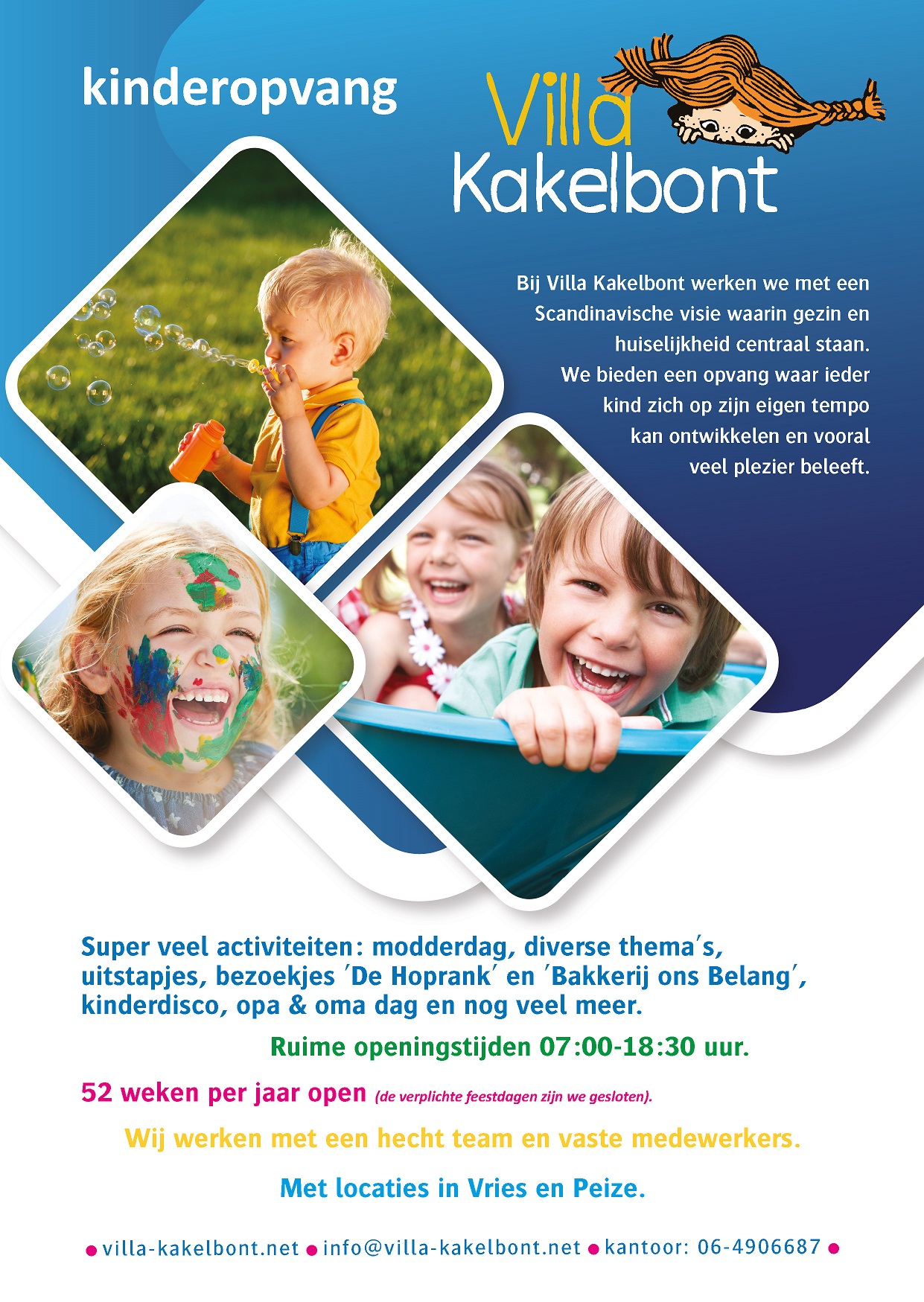 Villa Kakelbont is actief op twee locaties in Vries en Peize. Op beide locaties zijn groepen voor reguliere kinderopvang, Buitenschoolse opvang en …